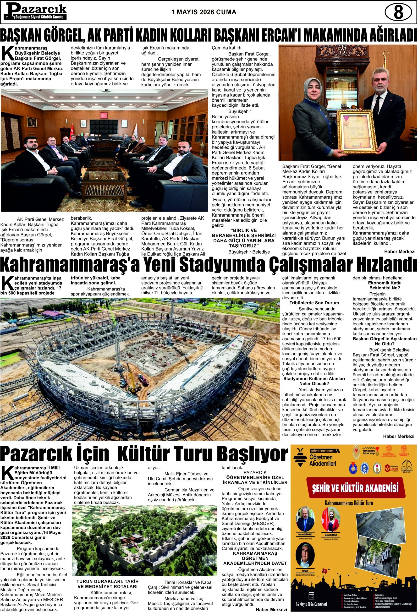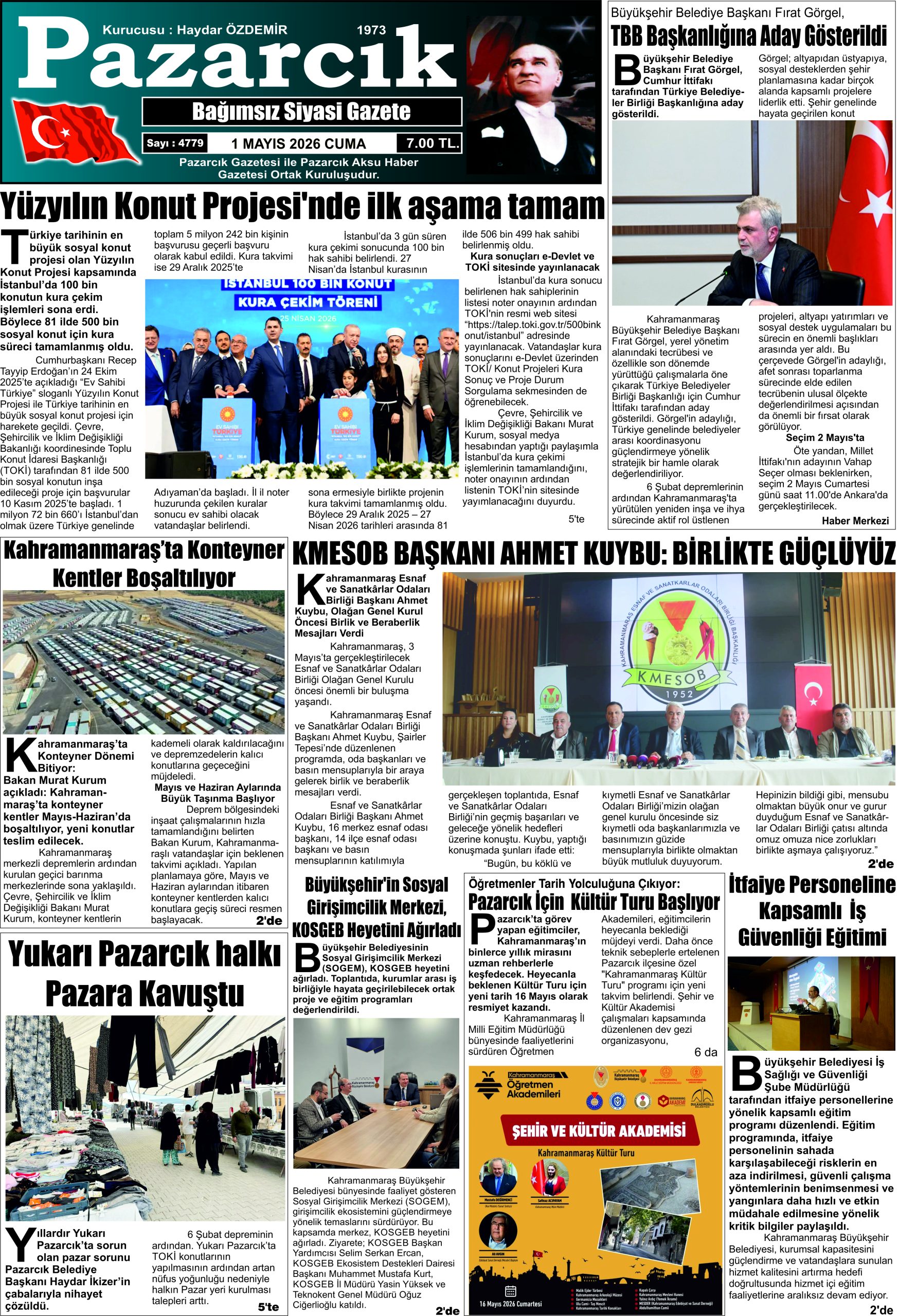 TwitterFacebookGoogle+Nisan 30, 2026 15:40, 0 Yorum Benzer Haberler Pazarcık Gazetesi 28 Nisan 2026 Salı Pazarcık Gazetesi 24 Nisan 2026 Cuma Pazarcık Gazetesi 21 Nisan 2026 Pazarcık Gazetesi 17 Nisan 2026 Cuma Pazarcık Gazetesi 14 Nisan 2026 Salı Pazarcık Gazetesi 10 Nisan 2026 Cuma