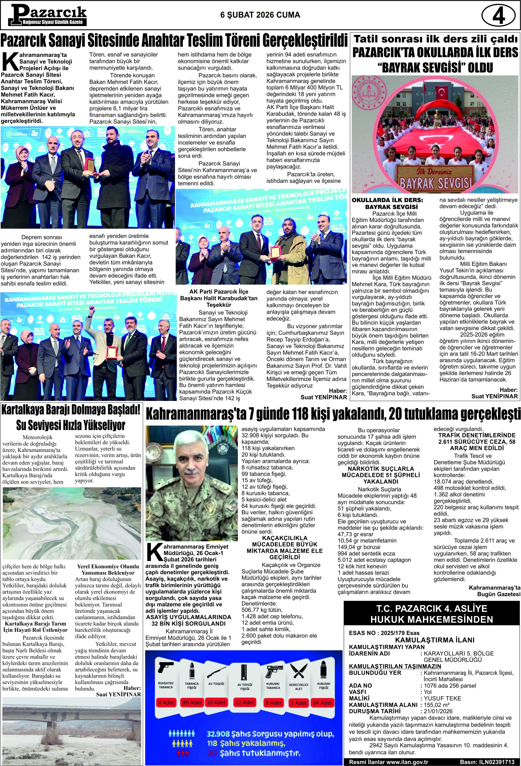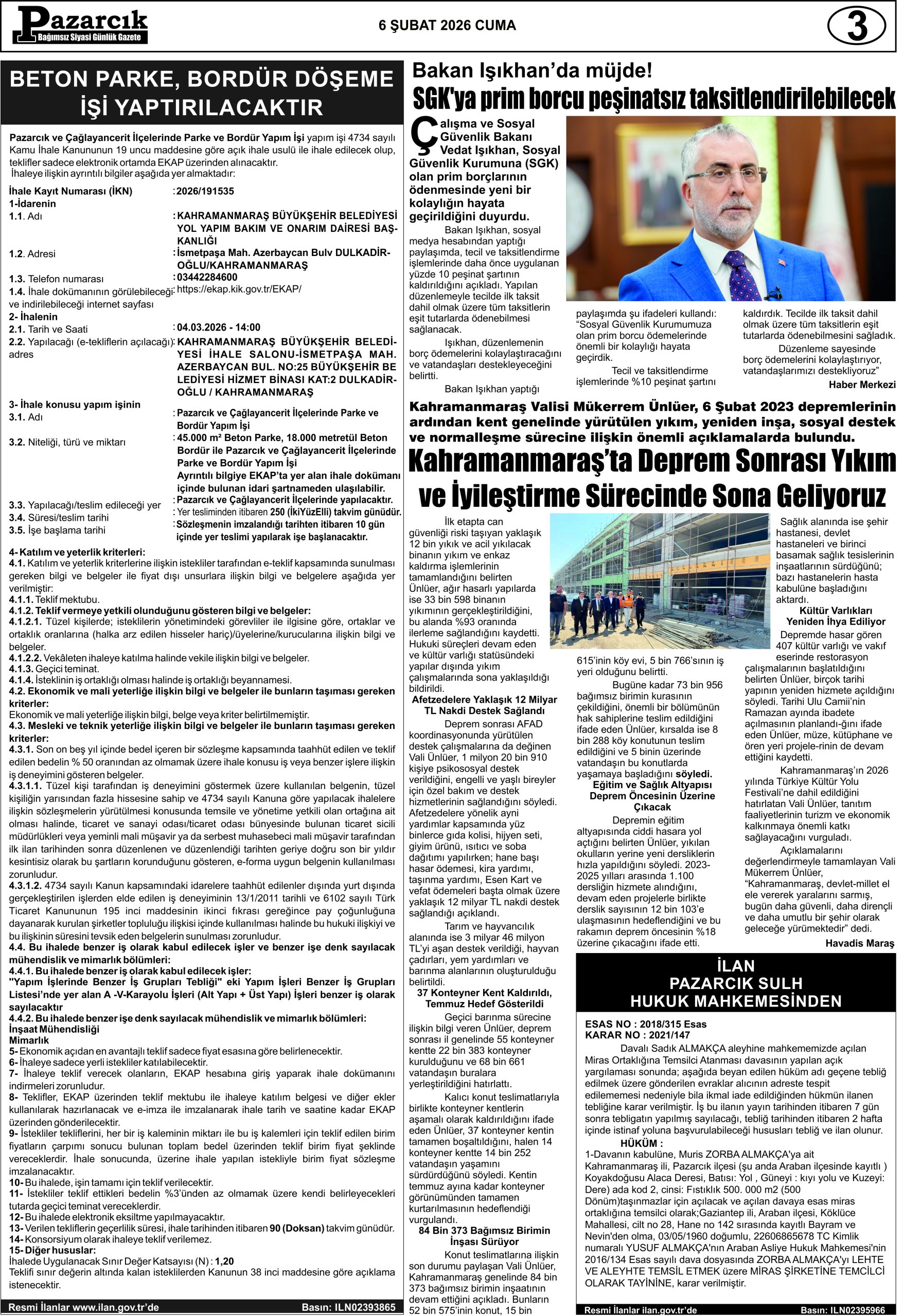 TwitterFacebookGoogle+Şubat 5, 2026 14:41, 0 Yorum Benzer Haberler Pazarcık Gazetesi 6 Mart 2026 Cuma Pazarcık Gazetesi 3 Mart 2026 Salı Pazarcık Gazetesi 27 Şubat 2026 Cuma Pazarcık Gazetesi 24 Şubat 2026 Salı Pazarcık Gazetesi 20 Şubat 2026 Cuma Pazarcık Gazetesi 17 Şubat 2026 Salı