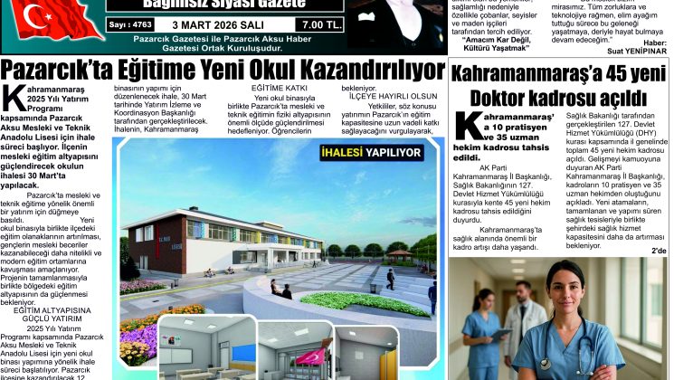 Pazarcık Gazetesi 3 Mart 2026 Salı