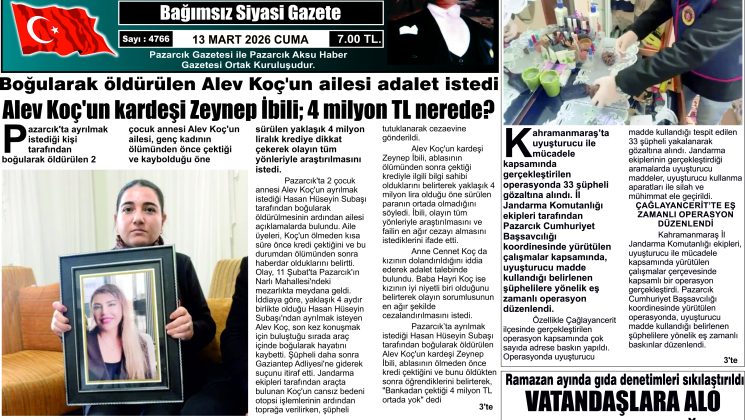 Pazarcık Gazetesi 13 Mart 2026 Cuma